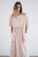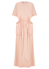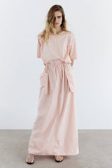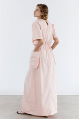 The Utilitarian Maxi is coloured in a feminine Blush hue and works for beach to boardroom with a relaxed silhouette, ¾ sleeving and oversized exterior pockets for a utilitarian feel. The drawstring waist gives added shape.